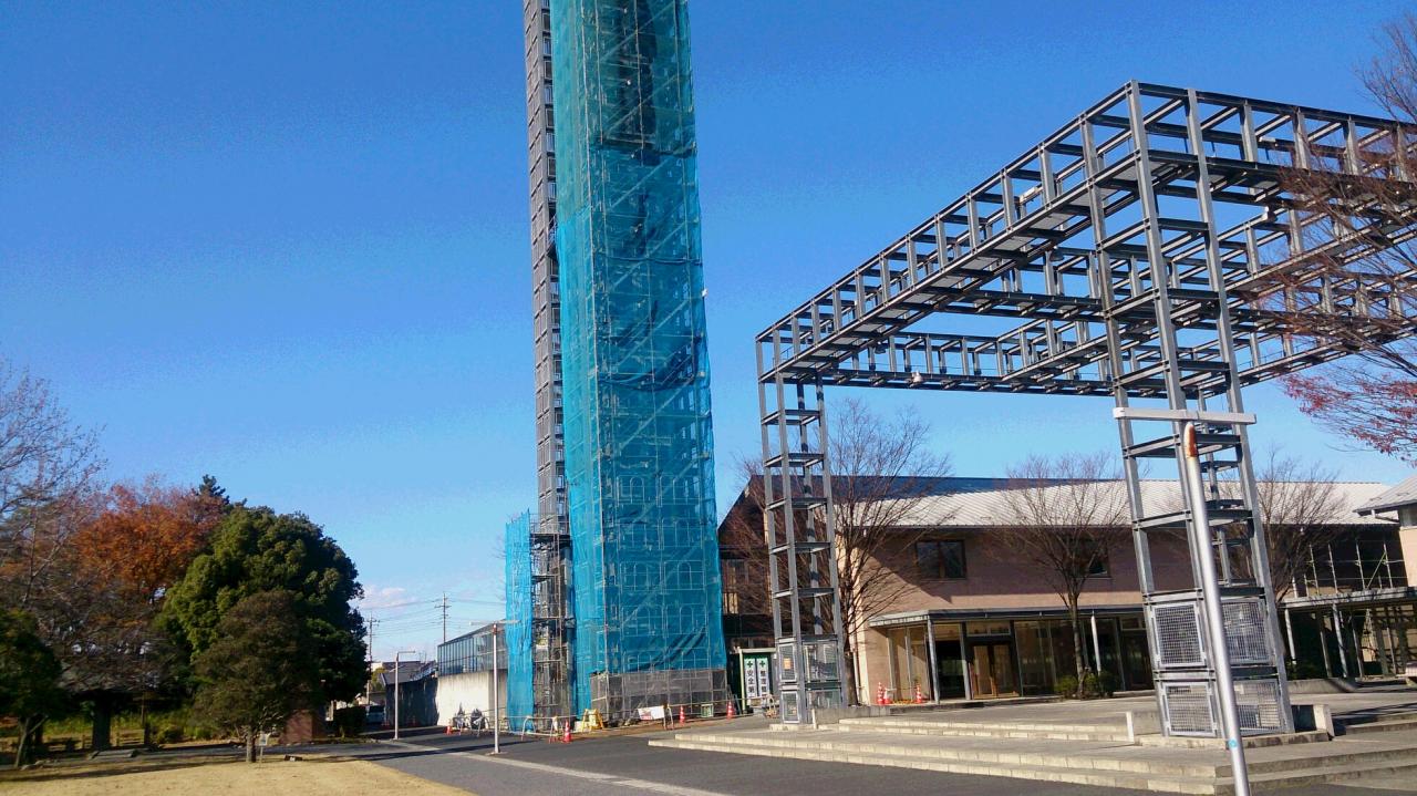 いずみの杜にそびえたっているシンボルタワーは今、リフレッシュ中です。2ヵ月程度かかるそうです。ちなみに展望室までは45メートルだそうです。