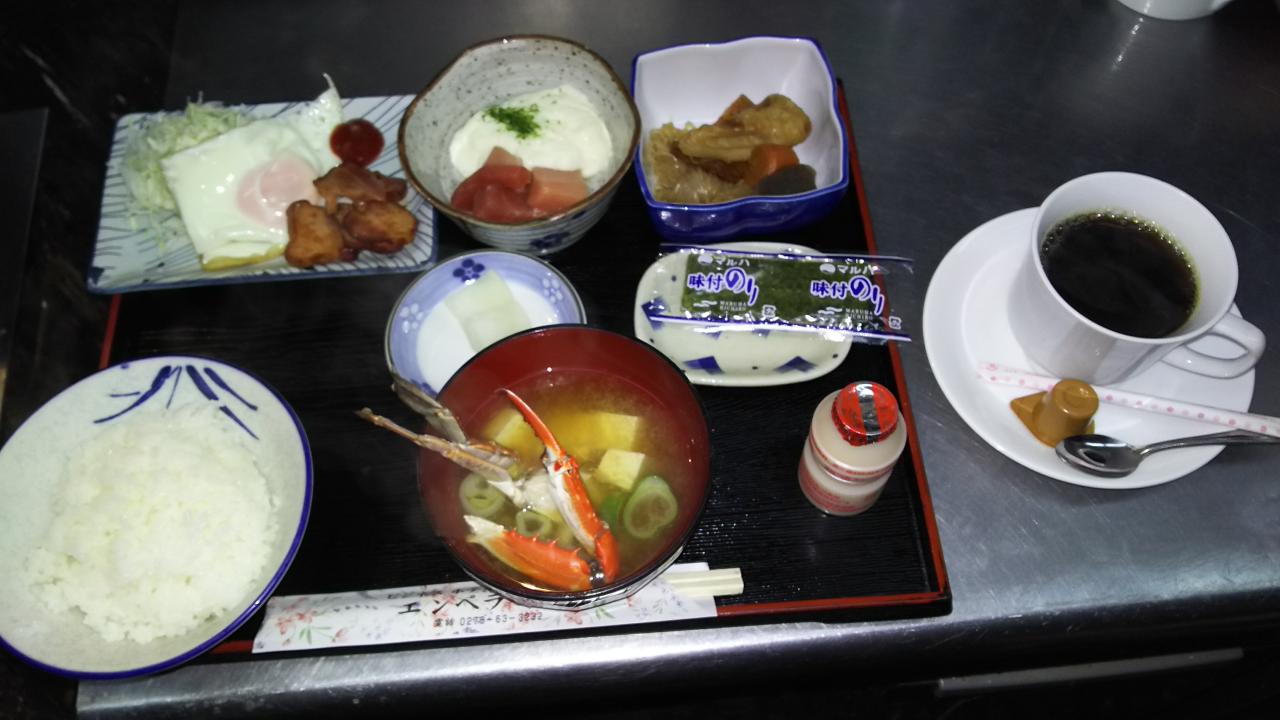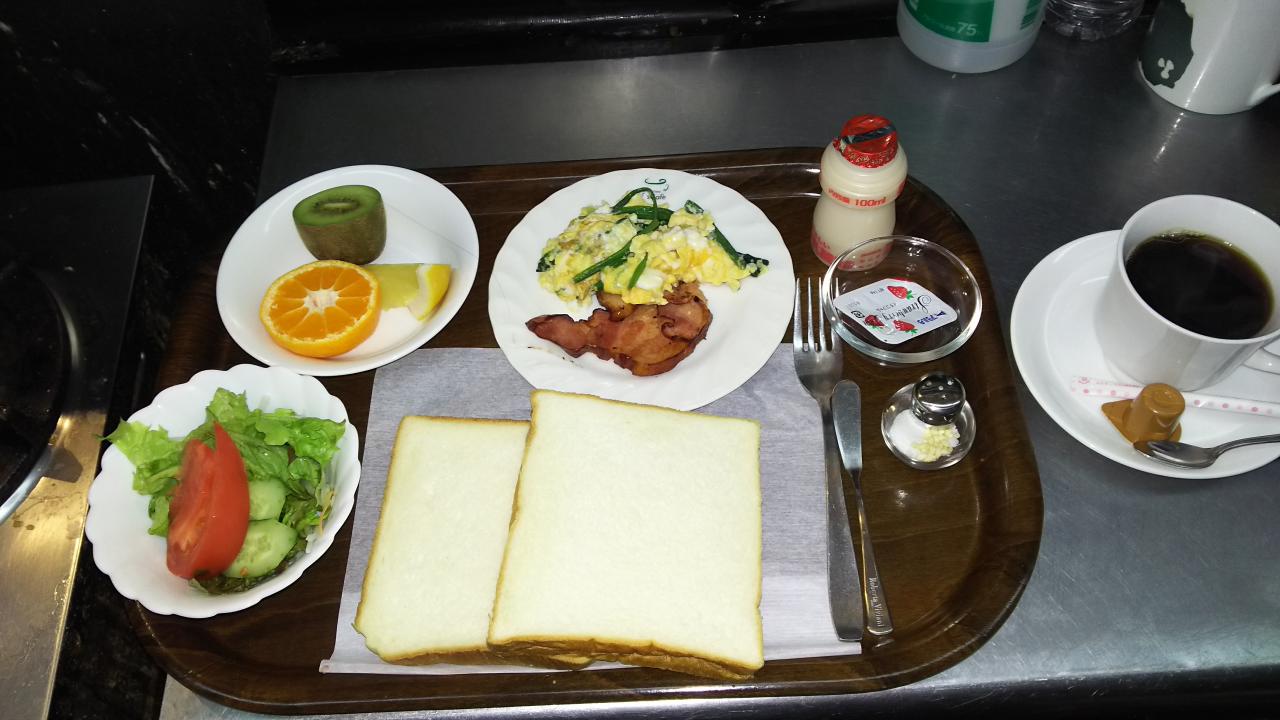 今朝の和食、洋食です。ちなみに和食の右上は蓮のきんぴらです。洋食の右上はキャベツとソーセージのクリームベンネです。